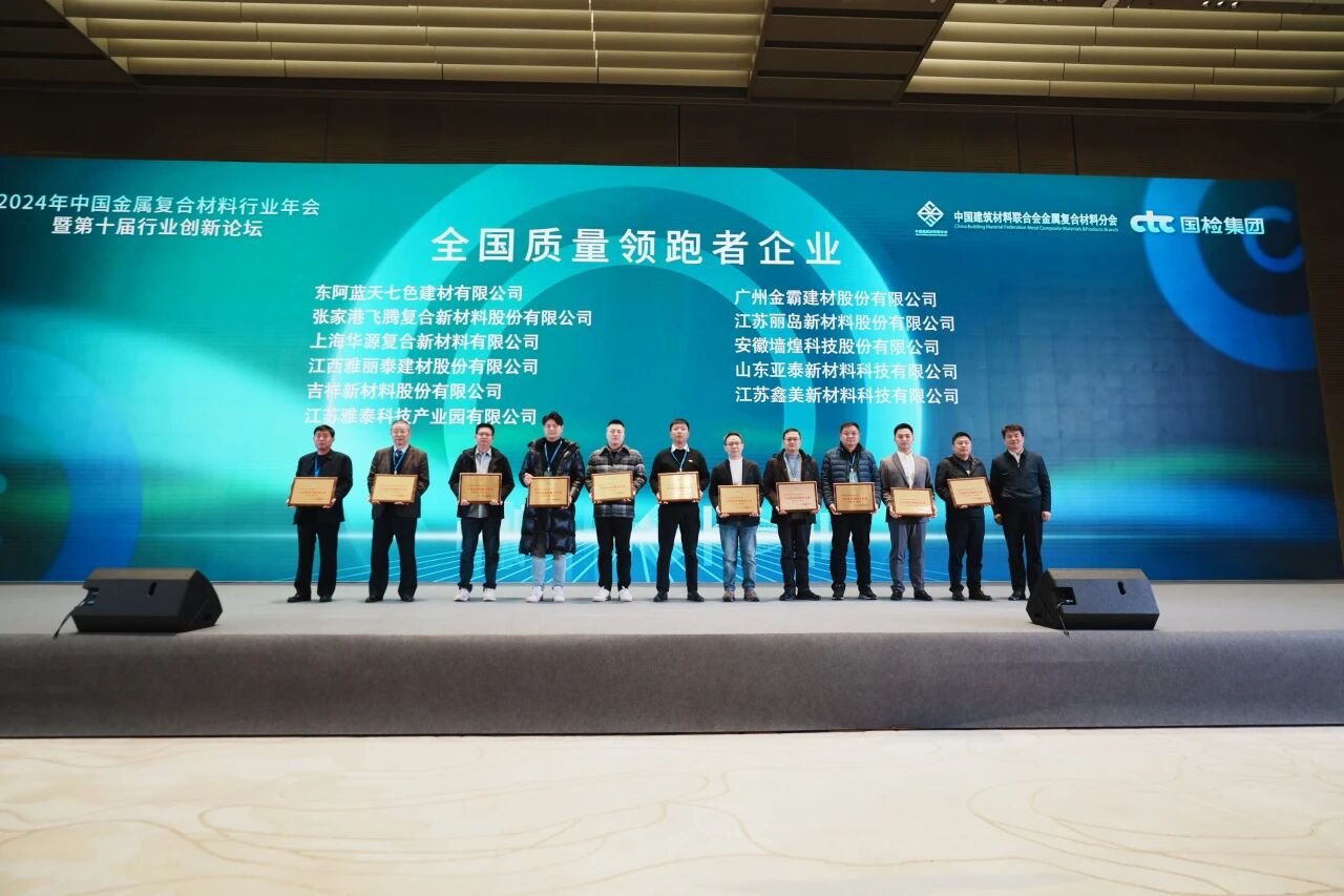 12月19日,金屬復合裝飾材料行業(yè)年會暨第十屆行業(yè)創(chuàng)新論壇在寧波市順利召開。大會由中國建筑材料聯(lián)合會金屬復合材料分會(以下簡稱金屬分會)、中國國檢測試控股集團股份有限公司(以下簡稱國檢集團)主辦。分會副理事長單位、常務理事單位、專家、學者和企業(yè)家代表參加了本次會議,雅泰實業(yè)集團作為副理事長單位應邀出席。